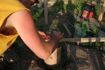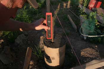 Checking the pin for plumb. |