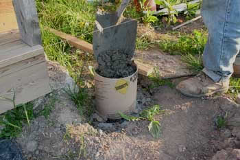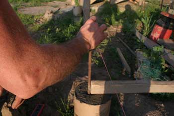 The process: first set the tube on the footer so it's fairly level and pour the concrete in. |