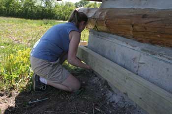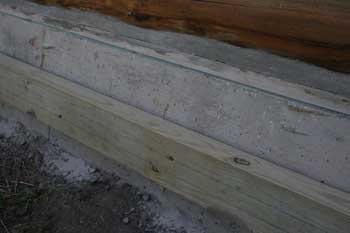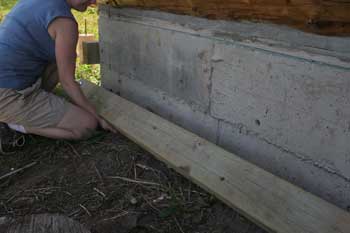 After the opposite end bolt is tapped part way in, the beam is held in place and ready to have the beam holes marked on the concrete. |