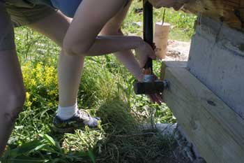 Tapping one of the end bolts part way into the hole in the concrete. |