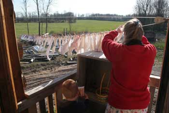 We finally got a new washing machine, but decided against a dryer for now. Instead, Jeff put up a clothesline today.